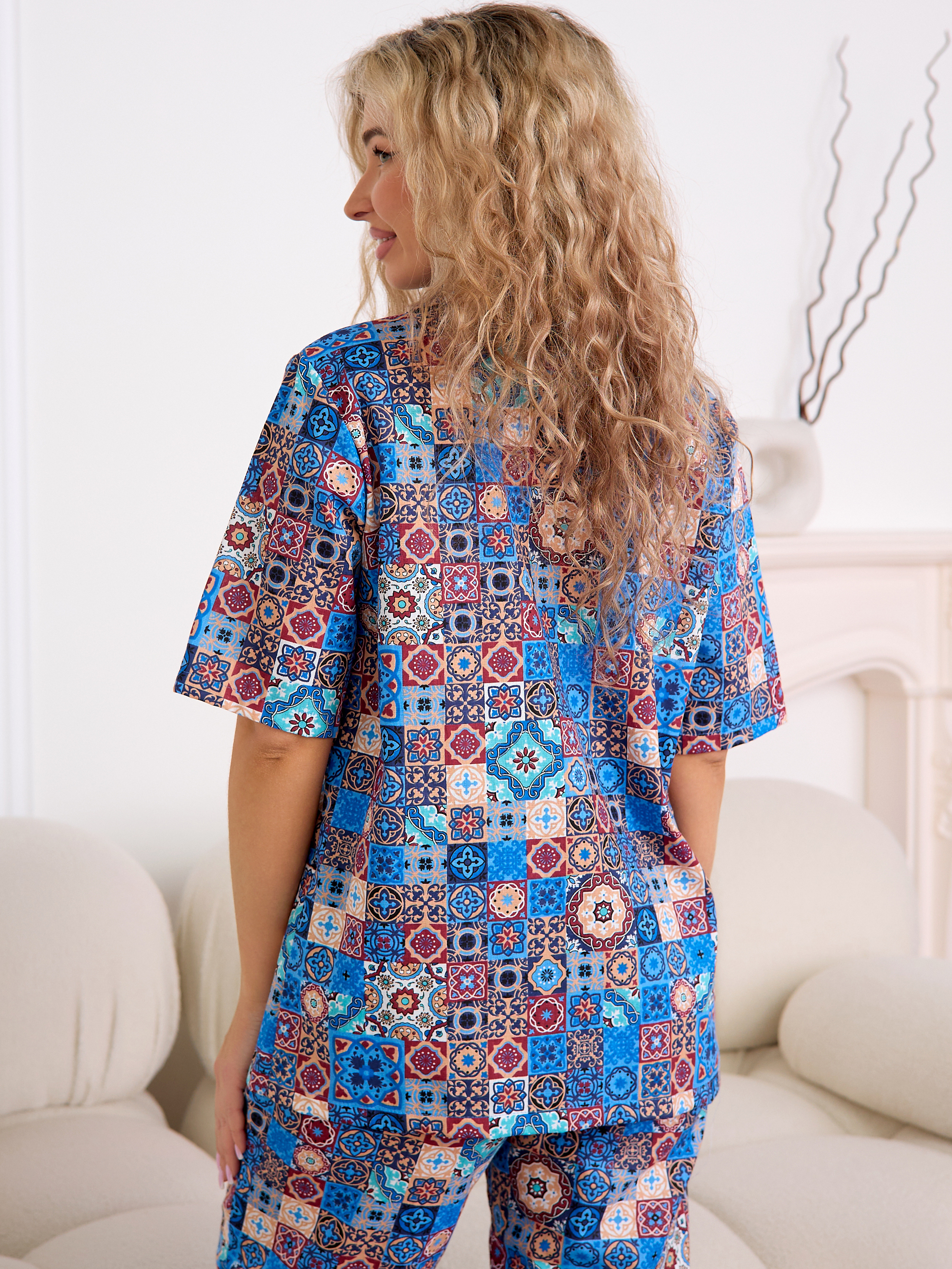 Костюм женский домашний из бязи штаны и рубашка с коротким рукавом.