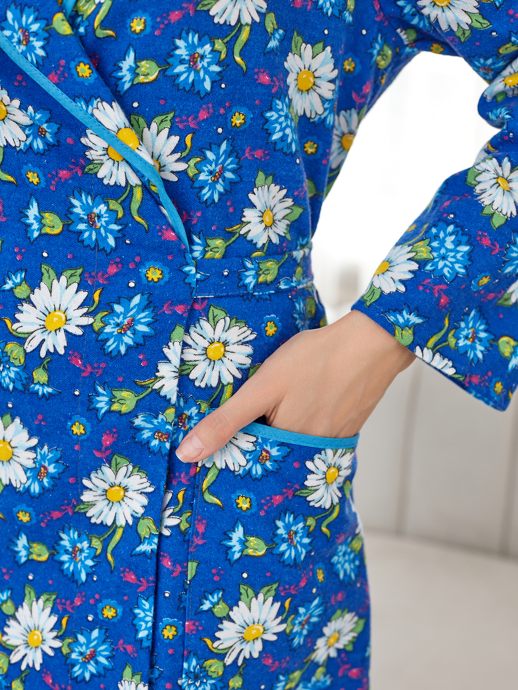 Халат байковый женский с длинным рукавом и накладными карманами на запах.