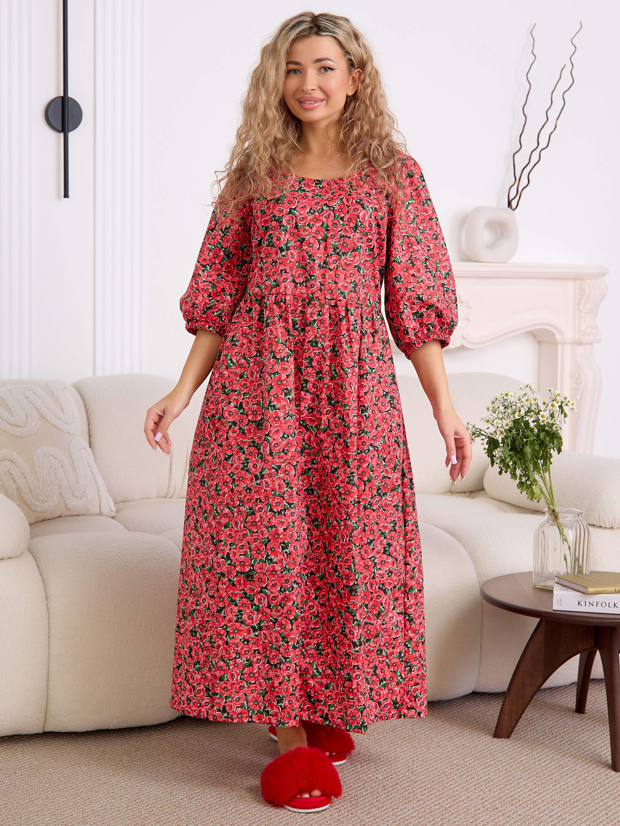 Рукав 3/4 с резинкой внизу — практичная и стильная деталь, которая завершает образ в духе «платья-крестьянки».